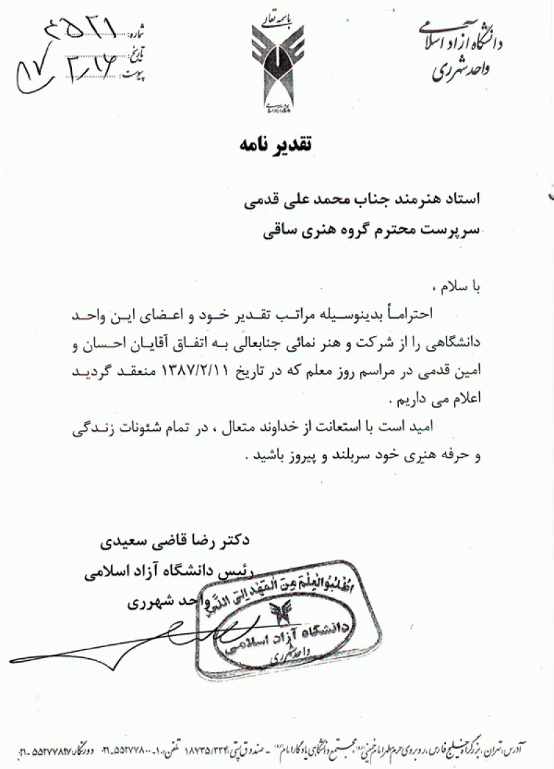 سایت رسمی استاد محمد علی قدمی(ساقی)